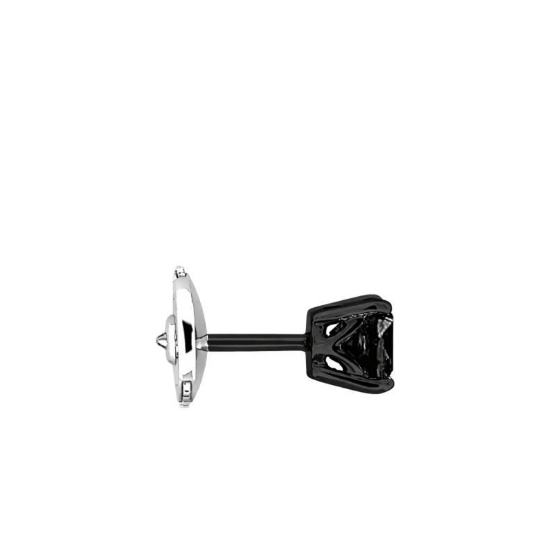 Le diamant noir de taille princesse est serti sur un chaton 4 griffes finement ciselé. Ses dimensions sont de 4x4 mm.