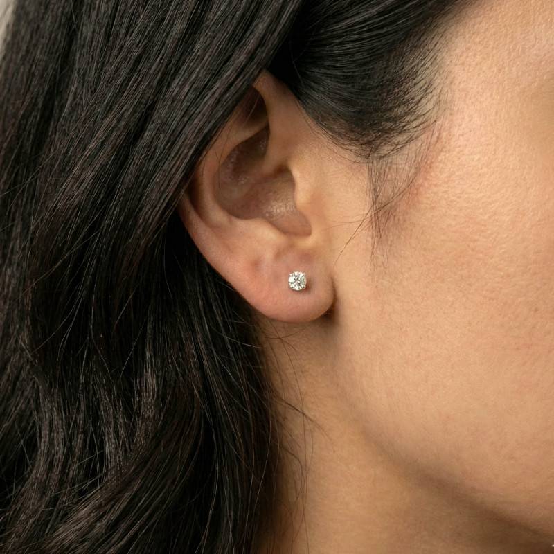 Craquez pour cette puce d'oreille vendue à l'unité. Elle est réalisée en or blanc rhodié 750/1000 (18K) et est ornée d'un ravissant diamant. Le diamant blanc de couleur G et de pureté SI2 est serti sur un chaton quatre griffes finement ciselé.