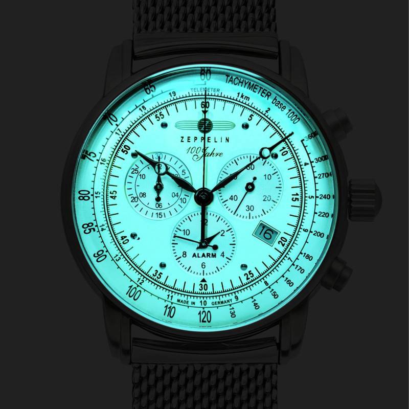 Que dire de ce bijou de l'horlogerie fine de la marque allemande Zeppelin ? Son design rétro, ses dimensions masculines et la qualité des matériaux font de ce garde-temps un objet à porter en toute circonstance. Conçu avec un boitier en acier inoxydable, celui-ci affiche des dimensions de 42 mm de diamètre, 11 mm d'épaisseur pour un poids de 76 grammes. Le verre surmontant la boite est un verre minéral tandis que le fond de boite est vissé. Cette montre accueille une couronne entourée de deux boutons poussoirs. Les différentes fonctionnalités offertes par ce garde-temps qui font de lui le compagnon idéal au quotidien.