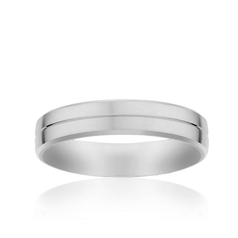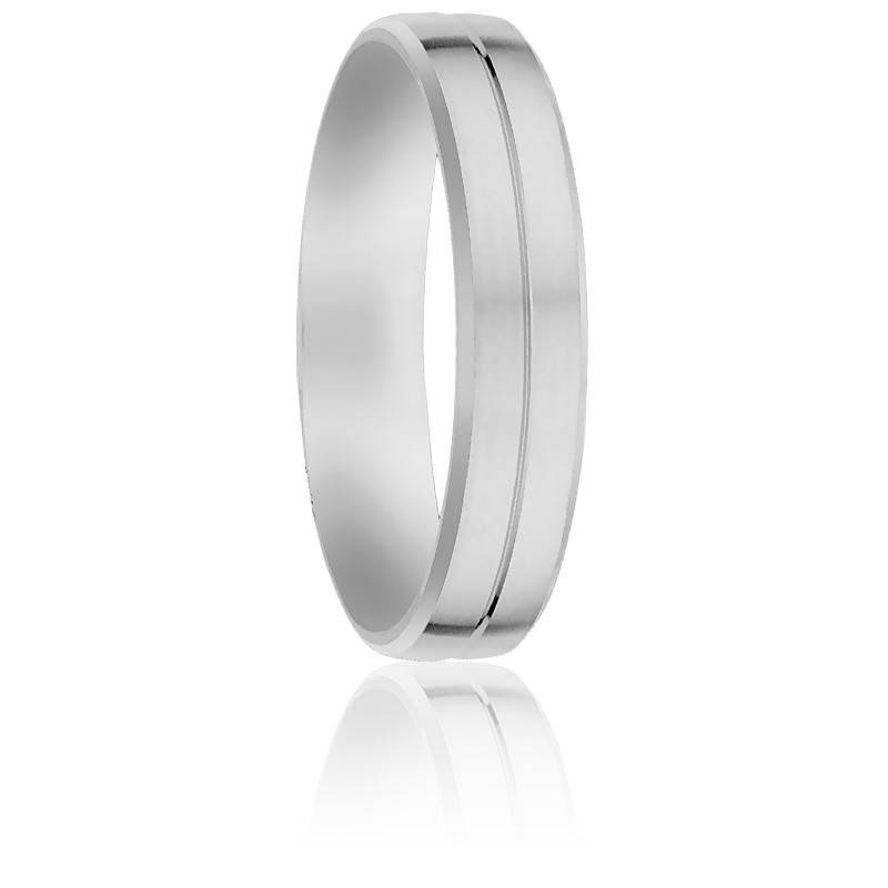 Cette élégante alliance en palladium 950/1000 possède une finition brossée. Pour ajouter une touche de modernité au design, une délicate rainure centrale polie vient compléter l'alliance. La bague possède une largeur de 4,50 mm, une épaisseur de 1,30 mm et un poids de palladium moyen de 3,64 grammes.