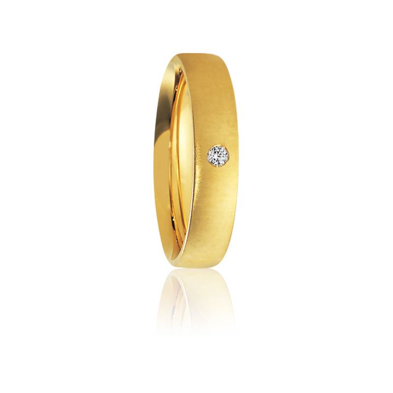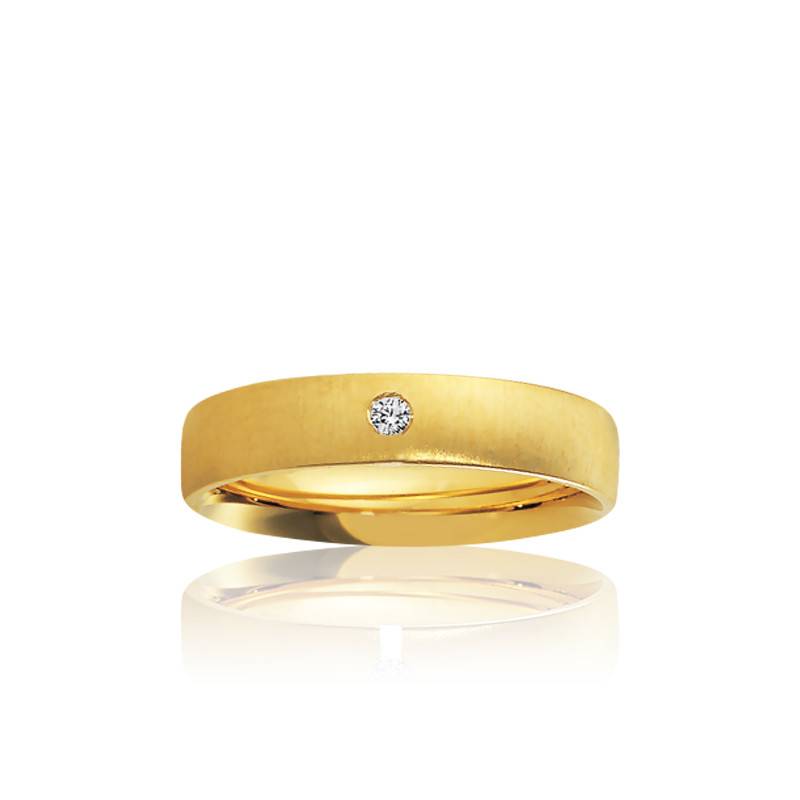 La maison vous dévoile cette alliance réalisée en or blanc 750/1000 (18K). Cette charmante alliance dispose d'une face qui est claire et polie, et l'autre qui a une finition sablée et foncée grâce à un léger alliage de ruthenium. Au centre est serti un diamant de 0,025 carat qui va apporter de l'éclat. De couleur G et de pureté SI1, ce diamant unifie avec élégance cette bague. La largeur de l'anneau est de 4,50 mm et son épaisseur est de 1,70 mm. Enfin, comptez un poids d'or moyen de 4,31 grammes.