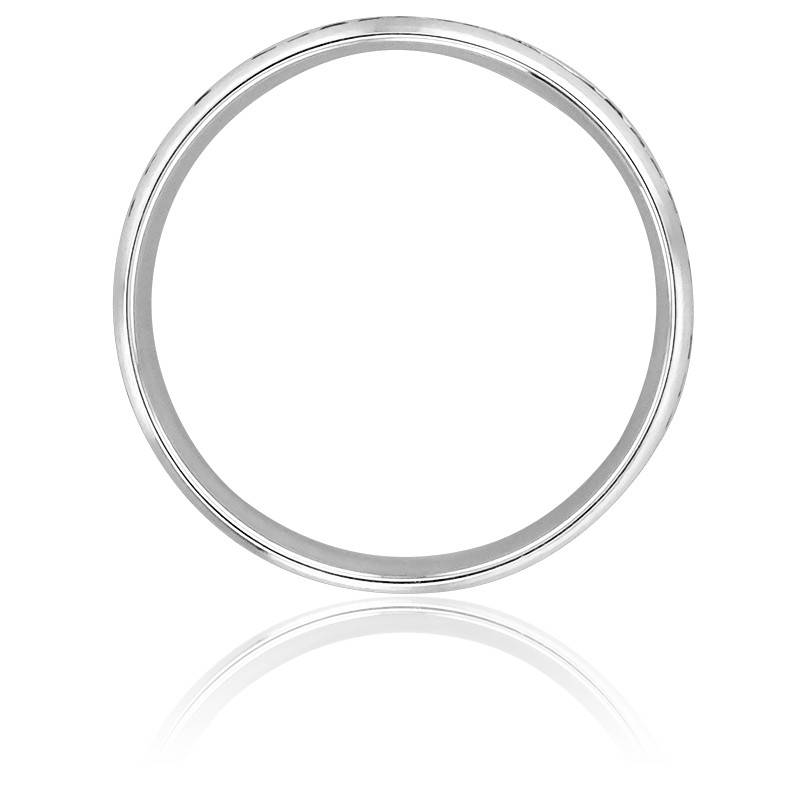 Laissez-vous transporter par cette magnifique alliance en or blanc palladié d'une largeur de 6 mm et d'une épaisseur de 1,50 mm. L'or blanc palladié est de l'or pur recouvert par une fine couche de palladium. Cette couche de palladium permet à l'or blanc de ne pas ternir et de conserver une blancheur naturelle éclatante. D'une finition brossée, le ruban est agrémenté d'une rangée centrale de 54 diamants sur tout le tour de l'anneau. De taille brillant, ils sont sertis rail et ont un poids de 0,70 carat. Enfin, le poids d'or moyen de cette alliance est de 6,04 grammes.