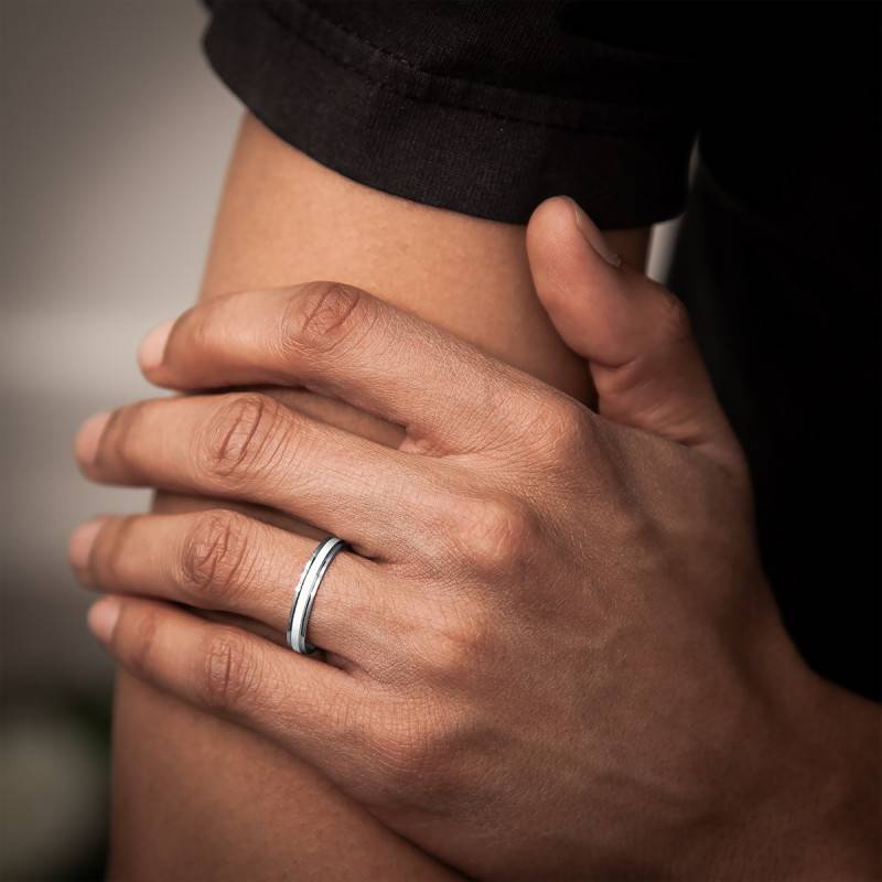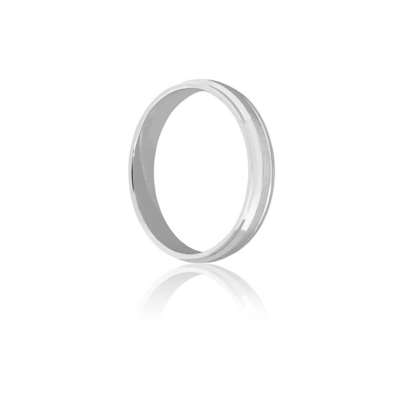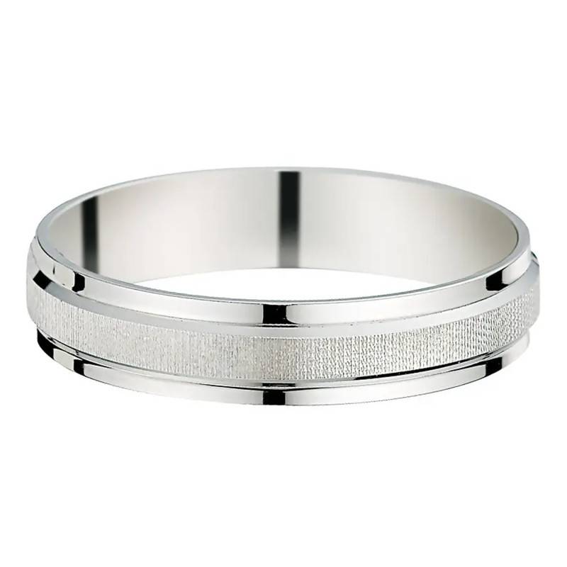 Succombez au charme de cette élégante alliance Avon River réalisée en or blanc palladié 750/1000 (18K). L'anneau présente au milieu une bande mate finement striée et sur chaque côté une fine rainure. L'anneau a une largeur de 3,50 millimètres et une épaisseur de 1,10 millimètres. Son design à la fois épuré et original donne à cette alliance du caractère. Comptez un poids d'or moyen pour ce bijou de 2,82 grammes.