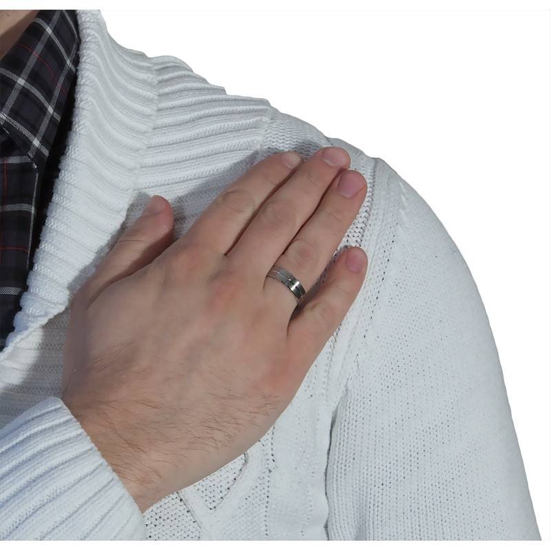 Cette délicate alliance se constitue de palladium 950/1000. La bague comporte un ruban plat à la finition brossée avec un délicat filet central poli. L'intérieur du bijou est également poli pour un confort exceptionnel. La largeur de l'anneau est de 6 mm et l'épaisseur est de 1,50 mm. L'alliance affiche un poids de palladium moyen de 5,60 grammes.