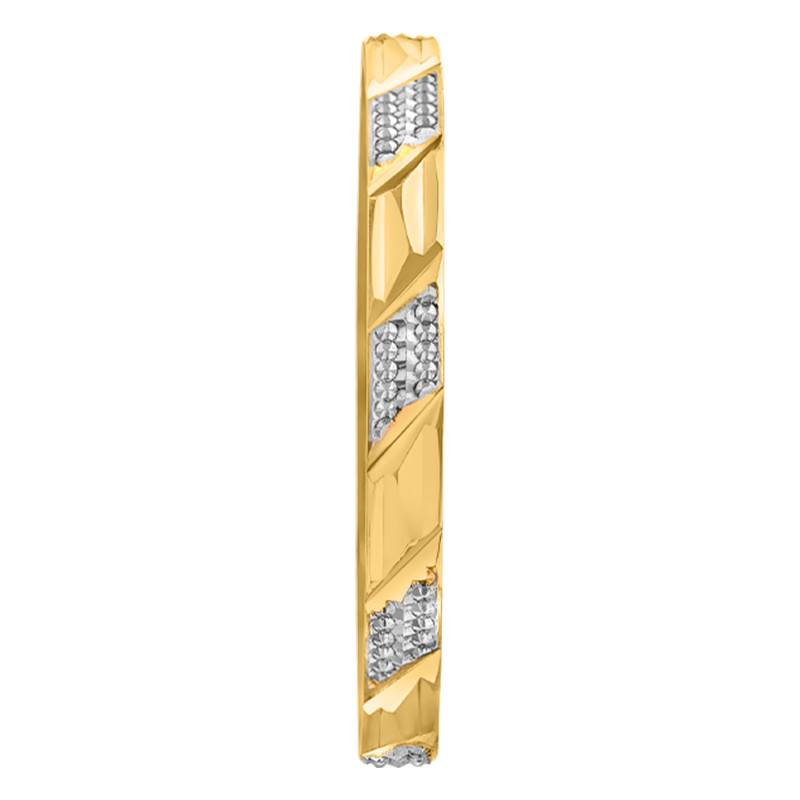 Cette alliance de couleur dorée se pare d'une finition polie afin d'accentuer la brillance de ce bijou. Fine et bicolore, elle saura l'addition originale parfaite à votre tenue. Ce bijou est fait à partir d'or jaune et blanc 750/1000 (18K) avec un poids d'or de 1,70 gramme et une largeur de 2 mm. Gage d'amour et d'union, cette bague saura mettre en valeur votre doigt en toute occasion grâce à sa surface texturée. Notez que la taille de cette alliance est un 54.
