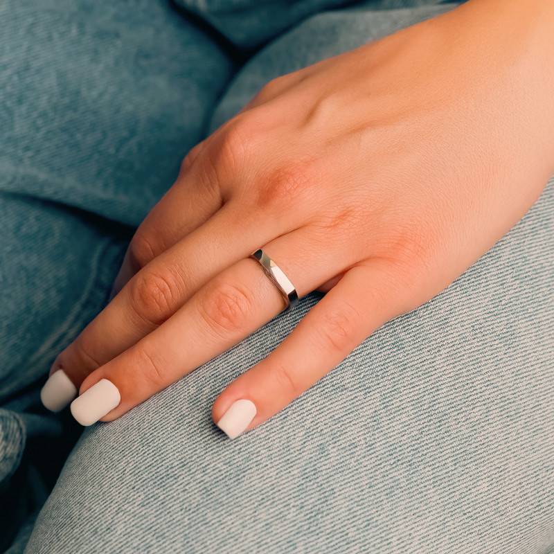 Découvrez cette somptueuse alliance entièrement composée d'or blanc 750/1000 (18K). Cela lui permet d'avoir une longue espérance de vie, sans la nécessité d'un entretien particulier. De forme carrée, elle possède un extérieur et un intérieur plats qui vous apporteront un confort inégalable et cela lui donne également une apparence graphique et géométrique très moderne ! L'alliance possède une largeur de 3,00 mm. Le poids, quant à lui, varie en fonction de la circonférence choisie, par exemple pour un tour de doigt en 54, le poids d'or moyen est de 3,40 grammes.
