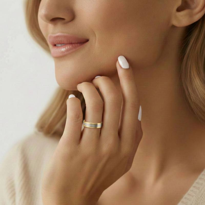Laissez-vous séduire par notre Alliance Concave Brossée en 2 Ors Blanc et Jaune. Le mariage harmonieux des 2 ors confère à ce bijou une allure inoubliable. Cette alliance au design concave est façonnée avec un or 375/1000 (9K) de qualité supérieure. Son allure mate et brossée capte la lumière avec subtilité. D'une largeur de 5 mm et une épaisseur de 1,35 mm, cette pièce assure confort et élégance à chaque instant.