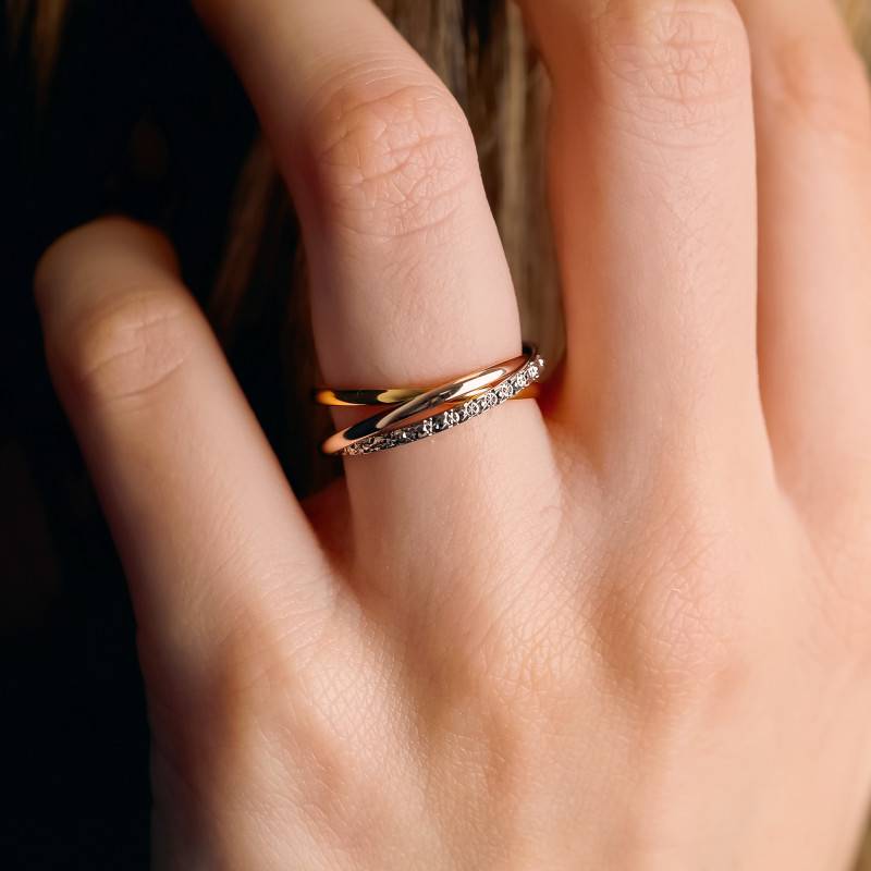 Cette sublime alliance racontera votre histoire et sera le témoin éternel de votre amour. Magnifique, cette bague se compose de trois anneaux tricolores arborant un aspect croisé. Réalisée en ors jaune, blanc palladié et rose de qualité 750/1000 (18K), cette alliance pour femme est mise en avant par un fini poli et diamanté qui renforcent leur charme. Confortable et légère, elle affiche une largeur de 1,50 mm et une épaisseur de 0,90 mm et son poids d'or moyen est de 3,39 grammes. Il vous sera possible de la graver afin de la rendre plus personnelle.
