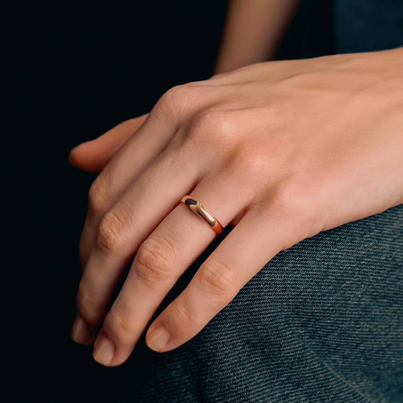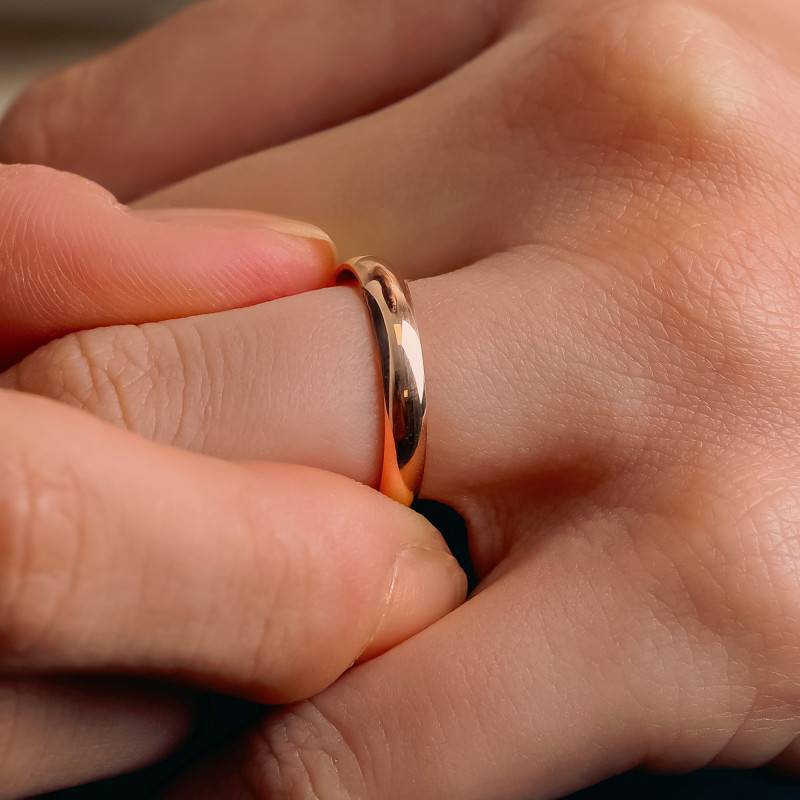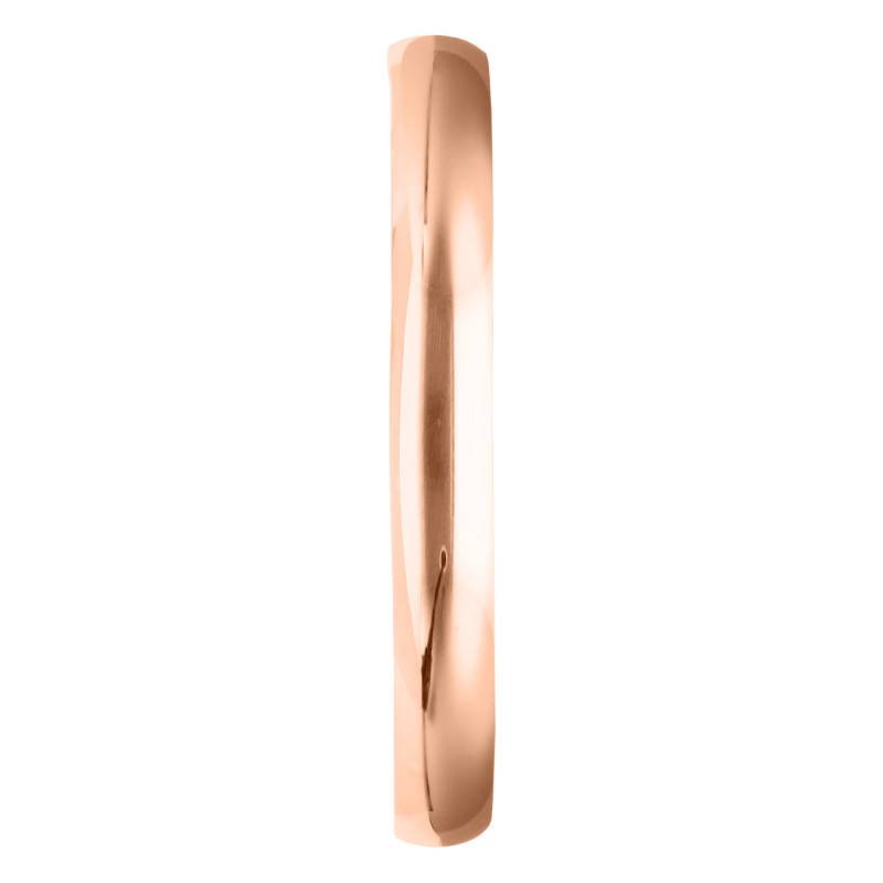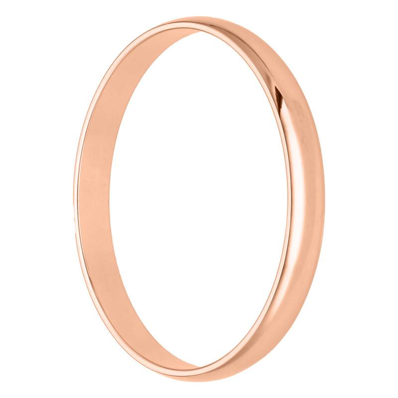 Voici une ravissante sublime alliance constituée entièrement en or rose 375/1000 (9K). De type demi-jonc, elle a donc un extérieur bombé et un intérieur plat pour vous apporter un confort inégalable et ainsi la rendre agréable à porter tous les jours ! Elle possède une largeur de 3 mm. Le poids varie en fonction de la taille choisie, par exemple pour un tour de doigt en 54, le poids d'or moyen est de 1,50 grammes.