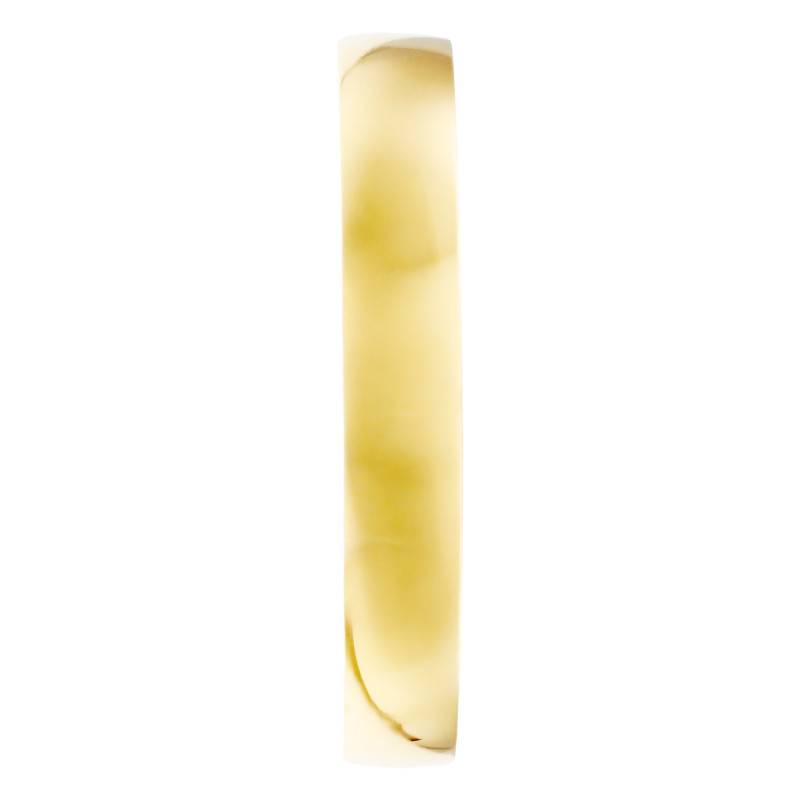 Voici une magnifique alliance ! Elle est entièrement faite d'or jaune 375/1000 (9K), ce qui lui permet de garder son éclat sans entretien particulier. Elle est de type demi jonc confort, c'est-à-dire que l'intérieur est légèrement arrondi et que l'extérieur l'est également, mariant ainsi confort, sobriété et raffinement. La largeur de l'anneau est de 3,00 mm lui permet d'être la bague idéale pour être associée à d'autres bijoux comme votre bague de fiançailles ! Le poids de la bague varie en fonction de la circonférence de l'anneau. Par exemple, pour un tour de doigt en 54, le poids d'or moyen est de 2,45 grammes.