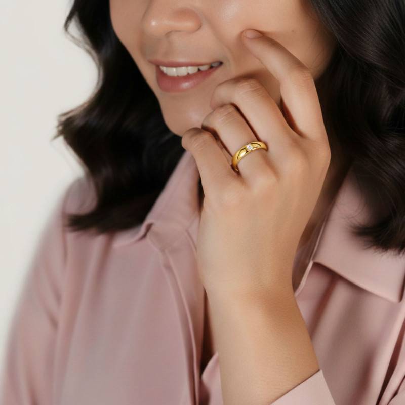 Laissez-vous séduire par l'Alliance Demi-jonc en Or Jaune 375 & Diamant 0,03 ct. Ce bijou, d'une largeur de 3 ou 4 mm, éclaire chaque promesse d'une lueur intemporelle grâce à son or jaune 375/1000 (9K) et sa finition polie brillante. La perfection du demi-jonc, alliée à l'éclat pur du diamant de 0,03 carat serti massé, offre un mariage harmonieux entre élégance et simplicité. Le diamant est d'une éclatante couleur G et d'une pureté SI1, tandis que l'épaisseur de l'alliance est de 1,35mm.
