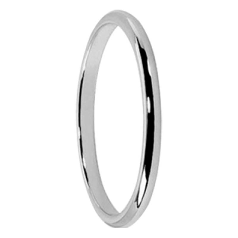Cette alliance demi-jonc en platine est un grand classique par excellence. D'une largeur de 1,50 mm, elle propose un intérieur plat et un extérieur bombé. Son épaisseur est de 1,30 mm.