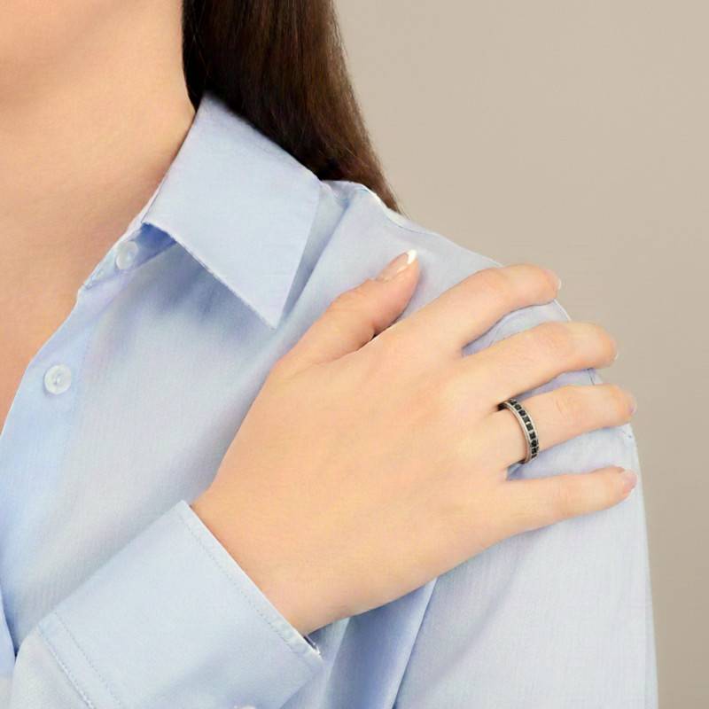 Voici une alliance qui ornera votre doigt à merveille. Façonnée en or blanc 375/1000 (9K), celle-ci se pare d'un joli ton argenté qui se combinera avec tous vos accessoires. Elle dévoile un anneau légèrement bombé qui affiche 3,40 mm de largeur sur une épaisseur de 1,07 mm. Soigneusement polie, cette bague vous accordera une note éclatante. Elle est ornée de 11 diamants de 0,02 ct dévoilant une couleur noire intense, ce qui vous offrira une allure incroyable. Elle épousera les lignes de votre doigt en assurant un port confortable grâce à son poids d'or moyen de 1,37 gramme. Cette alliance vous est proposée en tour de doigt 54.