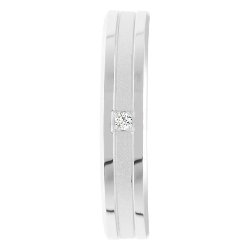 Rien de mieux que cette belle alliance pour vous démarquer au quotidien en portant le symbole éternel de votre amour et de votre engagement. Cette dernière viendra ajouter une touche élégante et raffinée à toutes vos tenues en sublimant votre main pendant de longues années. Son anneau au design intemporel soulignera délicatement votre doigt en assurant légèreté et confort. Celui-ci est fabriqué avec en moyenne 5,08 grammes d'or blanc 750/1000 (18K) palladié et se pare d'une belle finition polie, lui permettant de briller de mille feux sur votre doigt. Disponible en plusieurs tours de doigt, cette bague est magnifiée par deux lignes rainurées et sa surface est dotée d'un fini sablé, ce qui rehausse son charme épuré. Un diamant blanc de forme brillant vient l'agrémenter pour plus d'effet. Cette gemme de 1,50 mm de diamètre est sertie à grains et affiche une couleur H, une pureté SI et un poids de 0,017 carat. Agréable à porter, cette alliance saura devenir votre bijou essentiel de tous les jours. Pour les dimensions, elle mesure 1,50 mm d'épaisseur avec 4 mm de largeur.