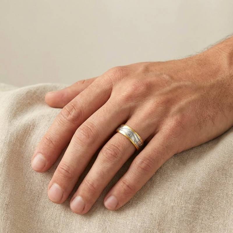 Cette Alliance Fantaisie Brossée en 2 Ors se dessine en un ruban délicat. Confectionnée en Or Blanc et Or Jaune, elle déploie une largeur de 5 mm pour un équilibre parfait entre discrétion et audace. La texture mate (Brossée / Satinée) confère à ce bijou une douceur tactile, tandis que les motifs sinueux captivent l'œil. Disponible en Or 375 (9K) et Or 750 (18K), cette alliance pèse, pour la taille 54, 2,33 g en 9K et 3,06 g en 18K, promettant légèreté et confort absolus.