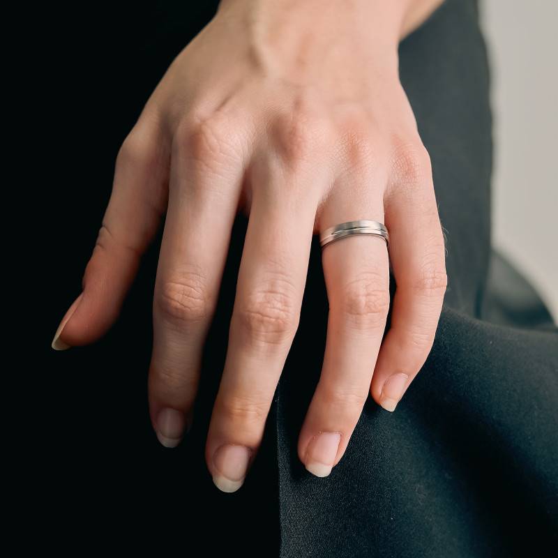 Cette alliance Fantaisie offre une combinaison d'élégance et de sobriété qui ne passera pas inaperçue. Raffinée, elle rehaussera votre look et vous accordera une touche chic et minimaliste. Elle est conçue en or blanc 750/1000 (18K) palladié et arbore une finition brossée bien soignée. Sa surface présente une rainure centrale lui assurant un beau rendu. Pouvant être gravée à l'intérieur avec l'inscription de votre choix, cette alliance dispose d'une largeur de 4 mm et d'une épaisseur de 1,50 mm. Quant à son poids, il est de 5,23 grammes en moyenne et varie selon la taille choisie.