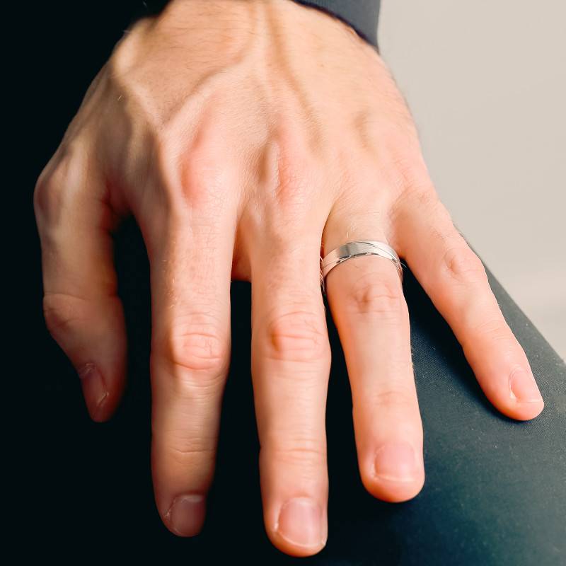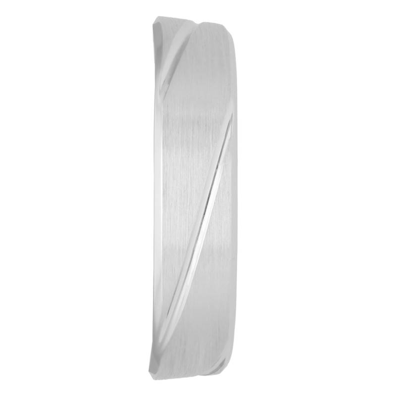 Attrayante, cette alliance Fantaisie est de teinte argentée. Cette bague est conçue en platine 950/1000 et arbore une élégante finition brossée qui lui accorde une plus belle allure. Elle se présente sous forme d'un ruban confort mesurant 5 mm de largeur et 1,10 mm d'épaisseur, alors que sa surface est rehaussée par de belles rainures. Cette alliance affiche un poids moyen de 5,37 grammes et il vous sera possible de la graver avec votre nom ou une inscription relative à un événement marquant.