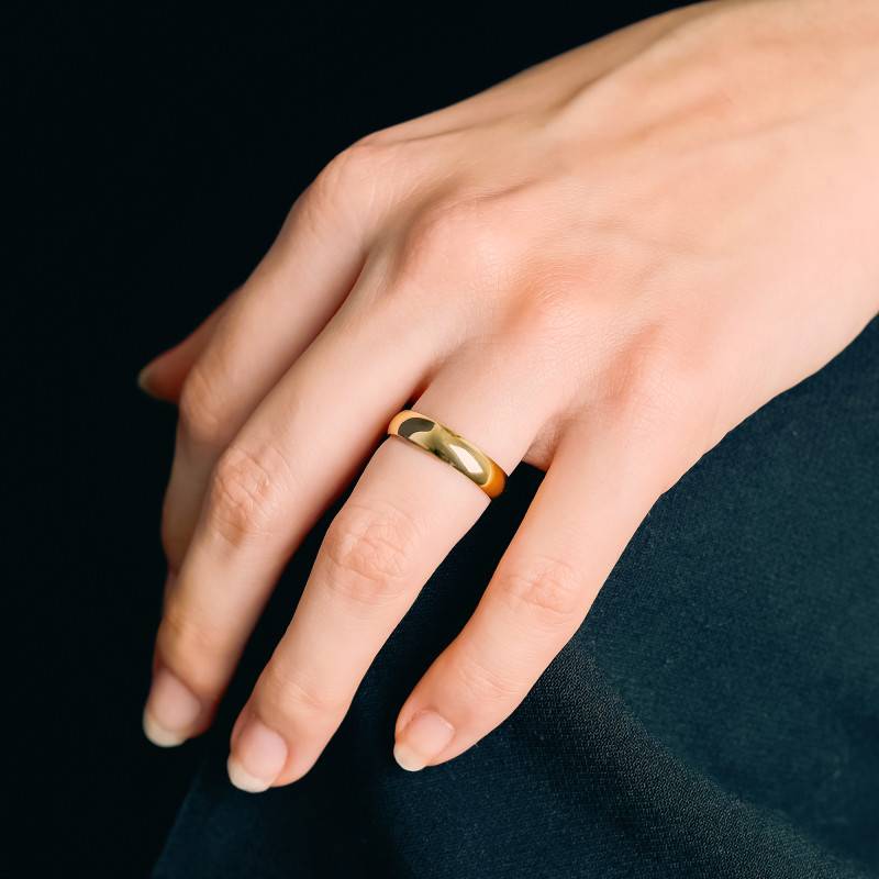 Soyeuse et attrayante, cette alliance saura magnifier le doigt de la personne qui la portera. Élégante et légère, elle est réalisée en or jaune 750/1000 (18K) et se pare d'une belle couleur jaune mise en avant par une finition polie qui accentue son charme. Pour une allure plus distinguée, elle dispose de dimensions idéales pour se remarquer sans trop d'artifices, notamment une largeur de 4,50 mm et une épaisseur de 1,50 mm. Cette alliance confort prend la forme d'un demi-jonc bombé et vous démarquera au quotidien. Vous avez la possibilité de la personnaliser avec la gravure de votre choix et elle vous est proposée avec un poids d'or moyen de 4,92 grammes. Ce dernier varie en fonction de la taille que vous choisirez.