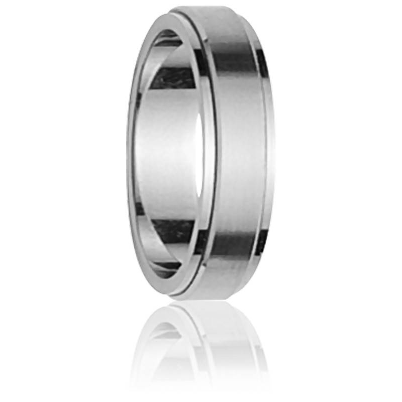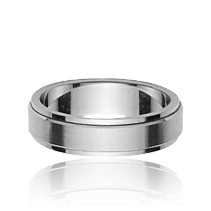 Laissez-vous tenter par cette élégante alliance en or blanc palladié 750/1000 (18K) et platine à la finition brossée. L'alliance possède une largeur de 5,00 mm et une épaisseur de 1,50 mm. La base de l'alliance est complétée par un anneau mobile. Le poids moyen d'or est de 2,50 g, tandis que le poids moyen de platine est de 5,20 g.