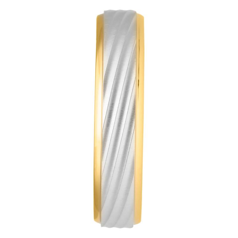 Cette radieuse alliance, conçue autant pour les hommes que les femmes reflète une beauté minimaliste qui fait toute sa splendeur. Elle est faite d'une magnifique combinaison d'or jaune et d'or blanc palladié. Cette bague présente une finition matée qui vous ajoutera une note chic. Cette jolie alliance affiche une largeur de 5 mm et une épaisseur de 1,00 mm. Cette alliance est disponible en or 375/1000 (9K) ou en or 750/1000 (18k). Enfin, pour la taille 54, elle dispose d'un poids moyen de 2,15g en 9K et 2,86g en 18K.