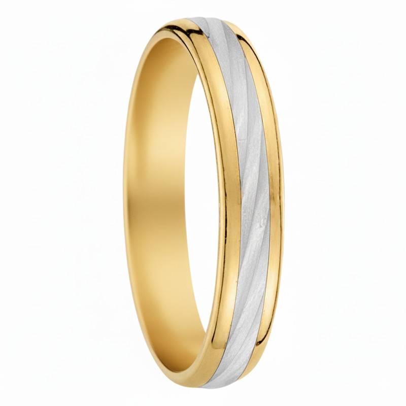 Parmi ses magnifiques modèles, nous avons sélectionné pour vous cette ravissante alliance destinée à célébrer votre union et votre engagement. Attrayante, elle est conçue en or jaune 750/1000 (18K) de finition polie et rehaussée par une bande centrale matée faite en or blanc 750/1000 (18K) palladié. L'ensemble offre un contraste exquis qui vous sublimera de jour comme de nuit. Adaptée autant aux hommes qu'aux femmes, cette radieuse bague affiche une largeur de 4 mm et une épaisseur de 1,30 mm. À noter que cette alliance est proposée avec un poids d'or moyen de 4,25 grammes et varie selon la taille choisie.