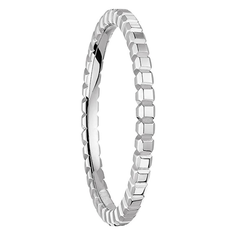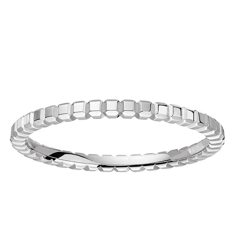 Cette alliance est réalisée en or blanc 750/1000 (18K) de très grande qualité. Les motifs carrés creusés sur le dessus et les côtés de l'alliance en font un bijou de caractère sortant de l'ordinaire. Sa finition brillante assure à cette alliance fine et délicate une brillance durable exceptionnelle.