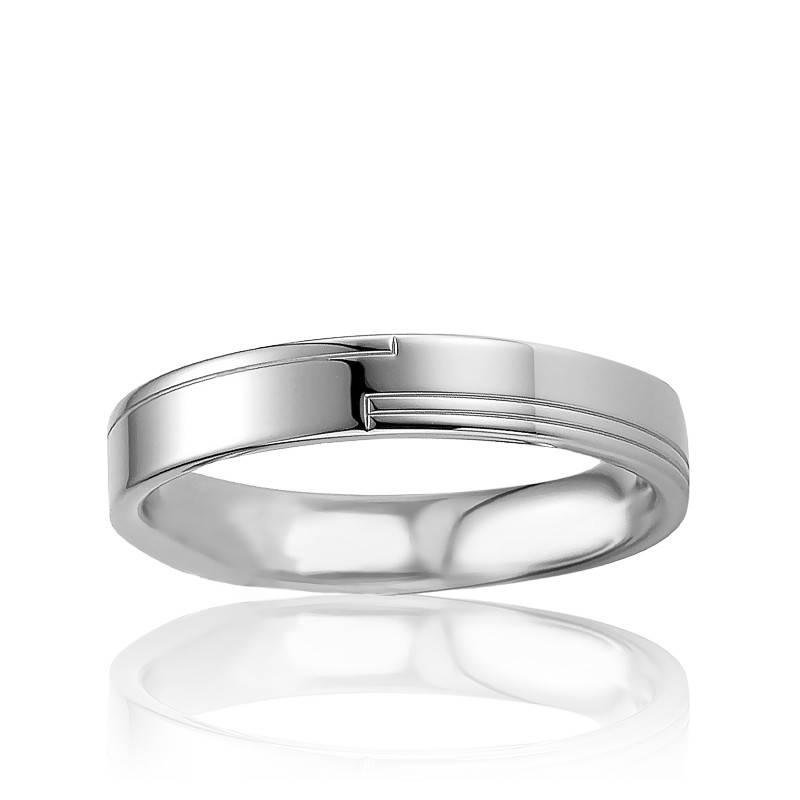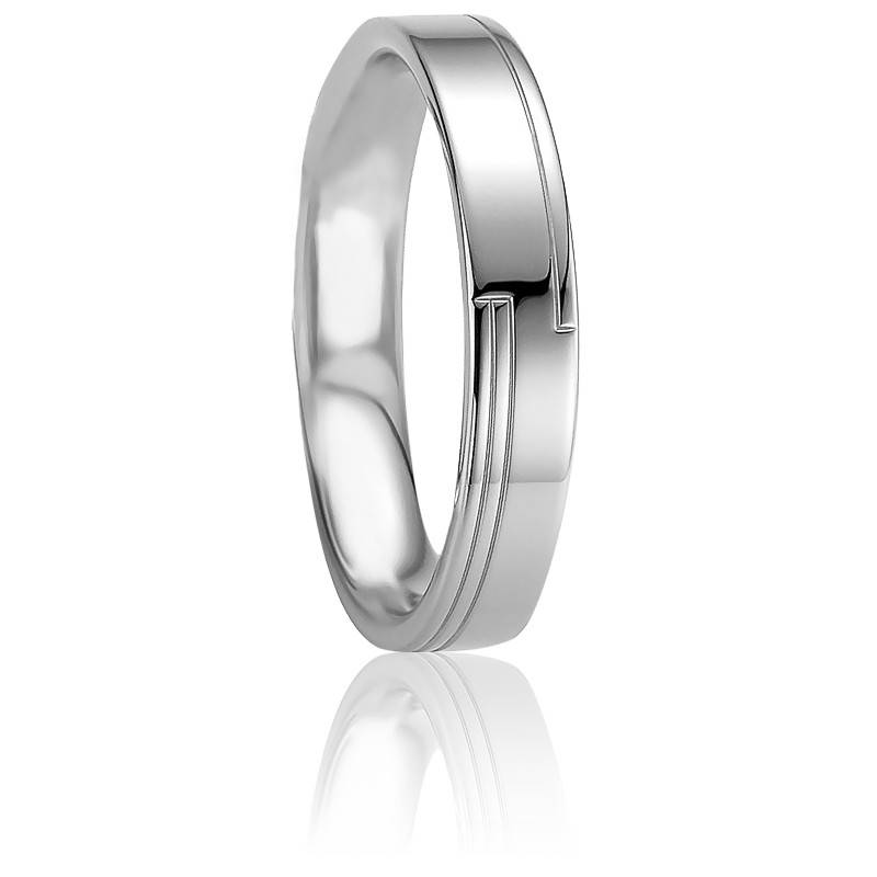 Design graphique pour cette alliance en argent massif 925/1000 à la finition polie. Composée de différentes bandes en argent, cette alliance possède une allure résolument moderne. Pour un porté agréable, cette alliance possède un intérieur confort et un extérieur légèrement bombé. Un poids moyen de 5,44 grammes pour une largeur de 4,50 mm. La marque Breuning grave son logo à l'intérieur de chaque alliance "FB ♡".
