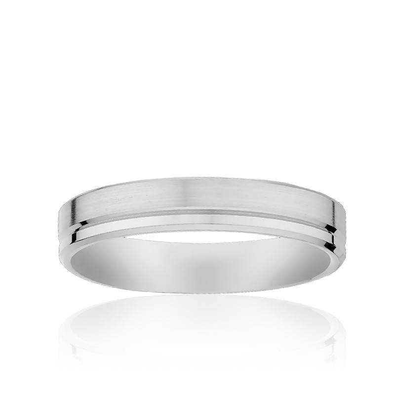 Ocarat vous présente cette ravissante alliance en palladium avec deux rubans dont un plus large brossé et un second poli. Ces deux rubans sont séparés par une fine et délicate rainure. La largeur de l'anneau est de 4,00 mm et l'épaisseur de 1,50 mm. L'alliance possède un poids de palladium moyen de 3,80 g.
