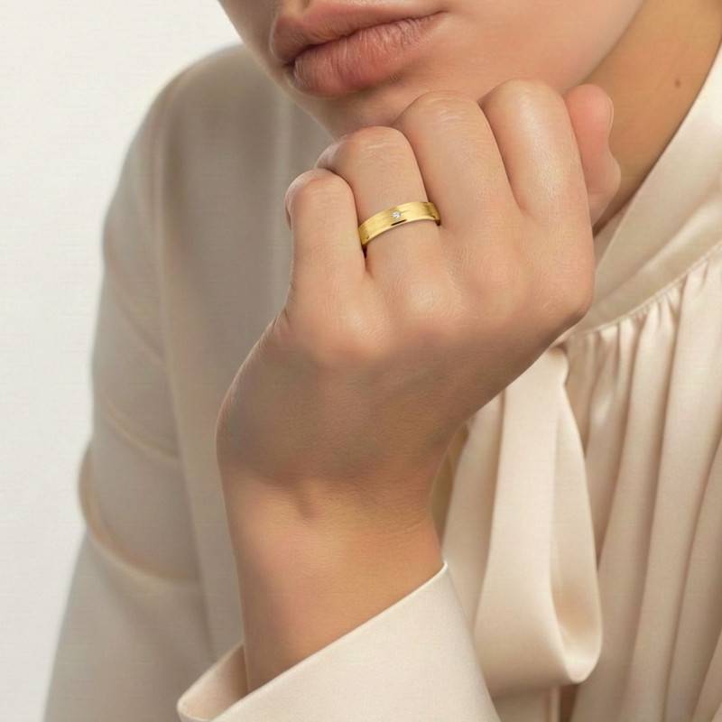 Sublimez votre engagement avec l'Alliance Ruban Brossé en Or Jaune 375 & Diamant de Synthèse 0,015 ct. Ce joyau mêle harmonieusement l'or jaune chacun à 375/1000 (9K) de pureté, pour créer un duo envoûtant. La finition mate brossée révèle une texture douce et élégante, parfait reflet de l'amour pur. Disponible en largeurs de 3 mm, 4 mm, et 5 mm, pour une épaisseur de 1,35 mm environ ; chaque anneau s'adapte à vos désirs les plus personnels.