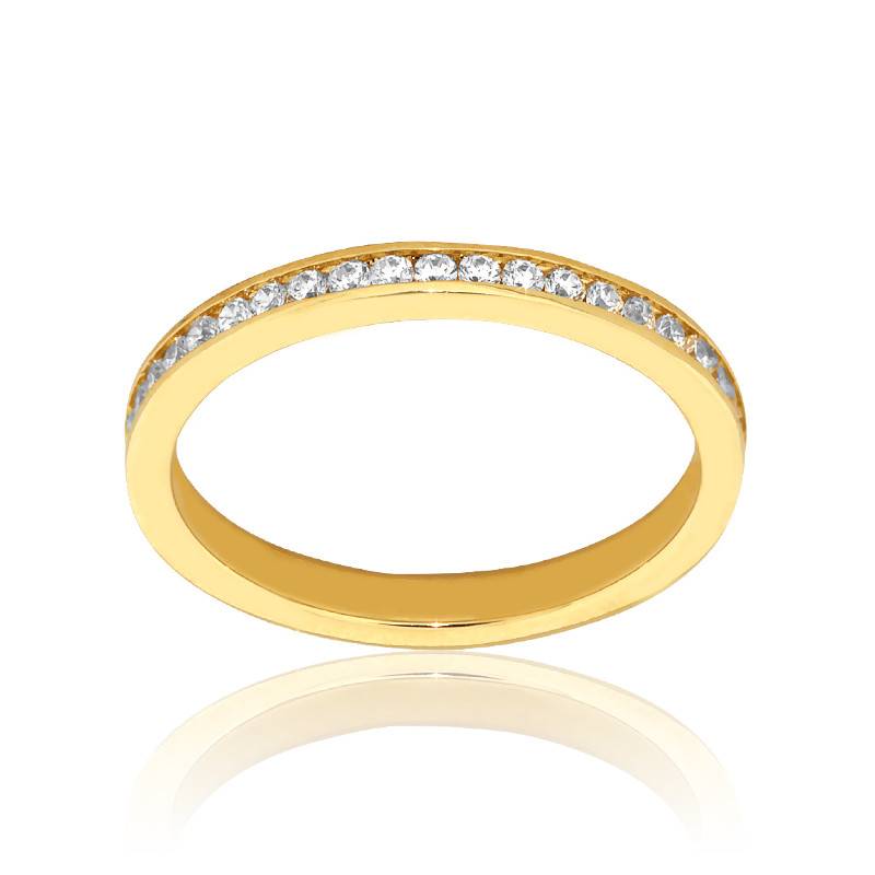 Découvrez l'alliance Sanaga, une sublime alliance tour complet en or jaune 750/1000 (18K) avec 47 diamants de 0,013 carat soit un poids total de diamants de 0,61 carat. Sertis rails, les diamants sont de couleur H et de pureté P1.
