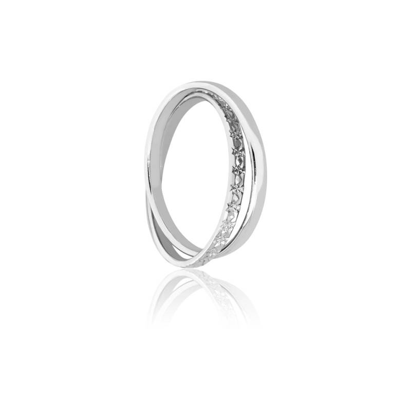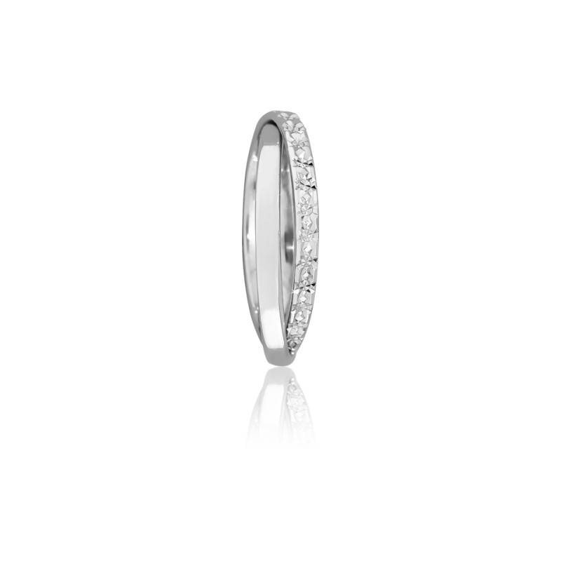 Vous aimerez le style intemporel de cette alliance en or blanc palladié 750/1000 (18K) à la finition polie. Elle se constitue de 2 anneaux entrelacés dont l'un est entièrement lapidé c'est-à-dire qu'il a une finition diamantée donnant l'illusion d'un sertissage. Ils ont une largeur de 2 mm et une épaisseur de 1 mm. Avec cette somptueuse alliance vous allez faire chavirer le coeur de votre moitié. Comptez un poids d'or moyen de 3,09 grammes.