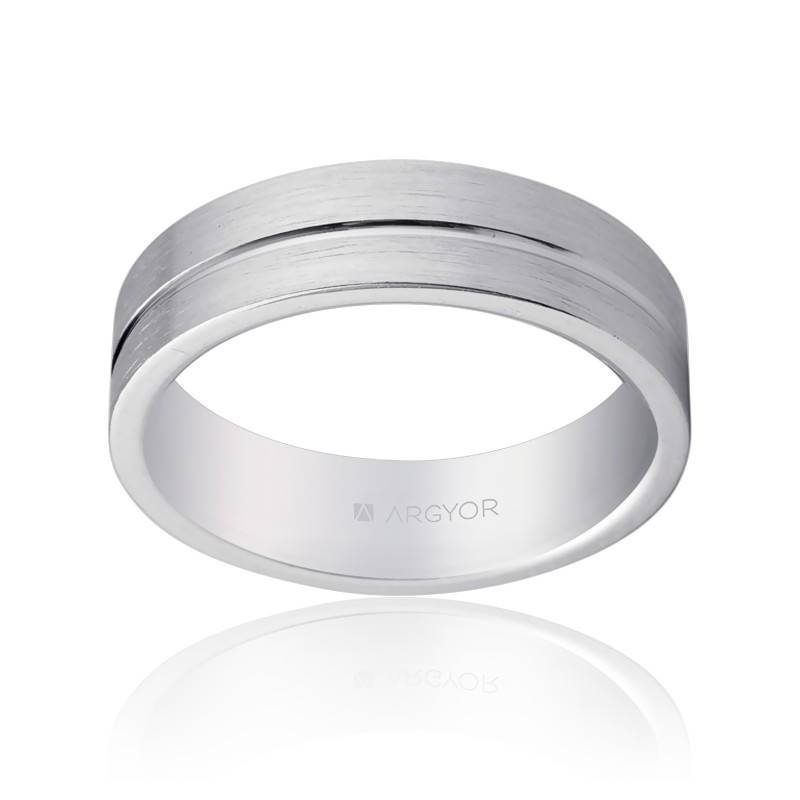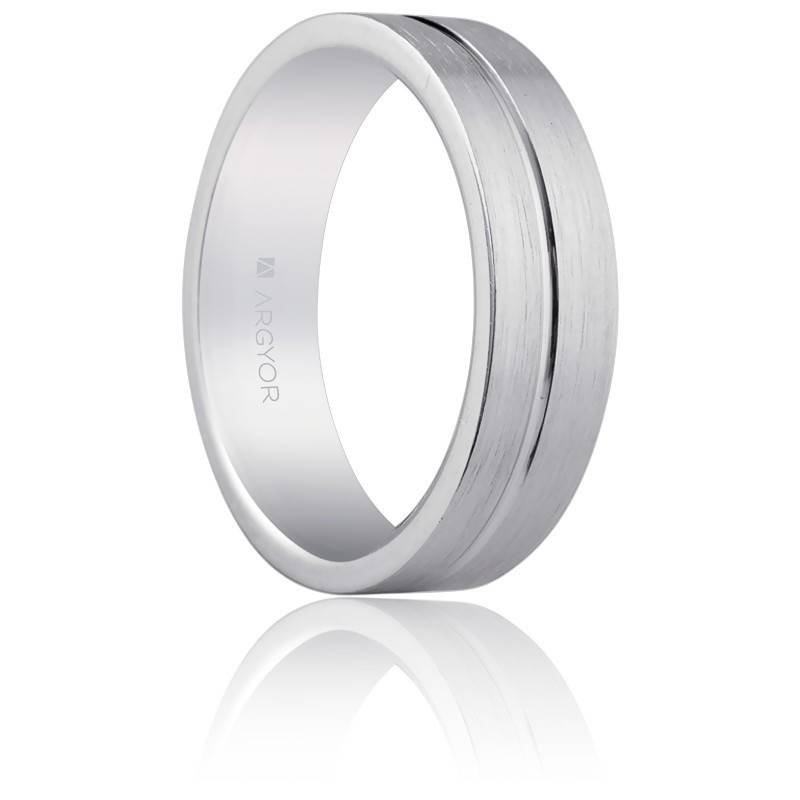 Découvrez cette ravissante alliance Amore de type ruban en argent d'une largeur de 5,50 mm à la finition brossée. L'alliance est séparée d'une rainure polie centrée. Elle propose un intérieur semi-bombé qui offre un confort remarquable pour le doigt. Comptez un poids d'argent moyen de 7,12 grammes.