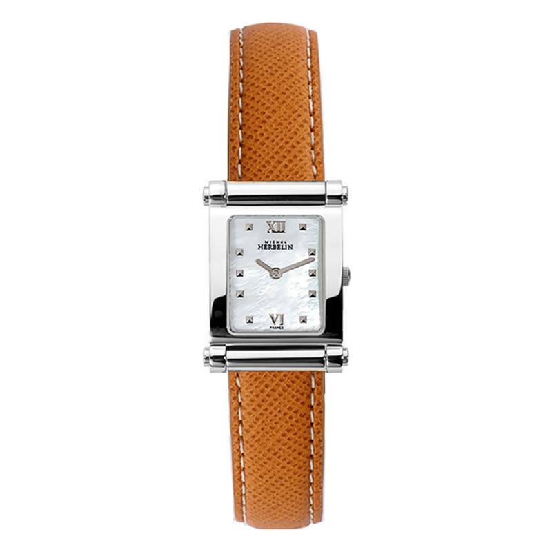 Personnification de l'élégance féminine, ce modèle Antarès de la maison française Michel Herbelin intègre un boîtier rectangulaire en acier inoxydable 316L. Affichant des dimensions de 29 millimètres par 20, le boitier se surmonte d'un verre saphir. Le fond de boite est emboîté et la couronne se loge aux 3 heures.