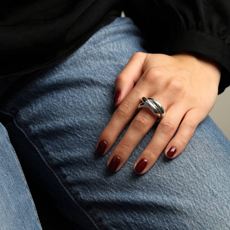 Cette bague 3 fils en argent massif marque sa distinction avec son design complexe composé de 3 fils de 5 mm d'épaisseur qui s'entrelacent les uns sur les autres. Elle est revêtue d'une couleur grise, qui lui donne une connotation assez douce, le tout avec un poids de 26 grammes. Cette bague s'agence avec bon nombre de styles vestimentaires pour votre plus grand plaisir.