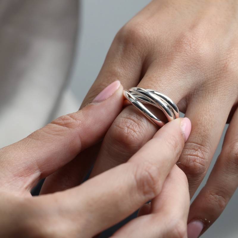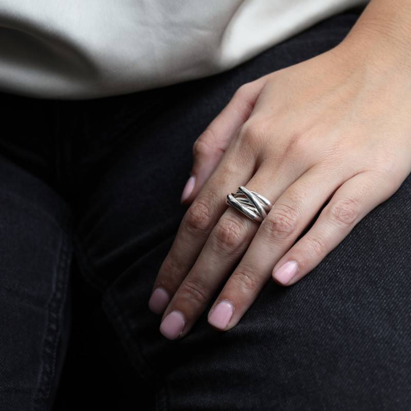 Elle vous fait découvrir sa ravissante bague 5 fils au design complexe et particulièrement élégante. Cette dernière est confectionnée avec cinq magnifiques anneaux ronds qui s'enlacent délicatement et mesure 3 millimètres de largeur. Les anneaux sont mobiles et donc non soudés. Ils sont faits en argent 925/1000 avec une ravissante couleur argentée remarquablement claire qui donne une allure charmante et apaisante. Cette bague pèse 12,1 grammes et se décilne en plusieurs tailles.