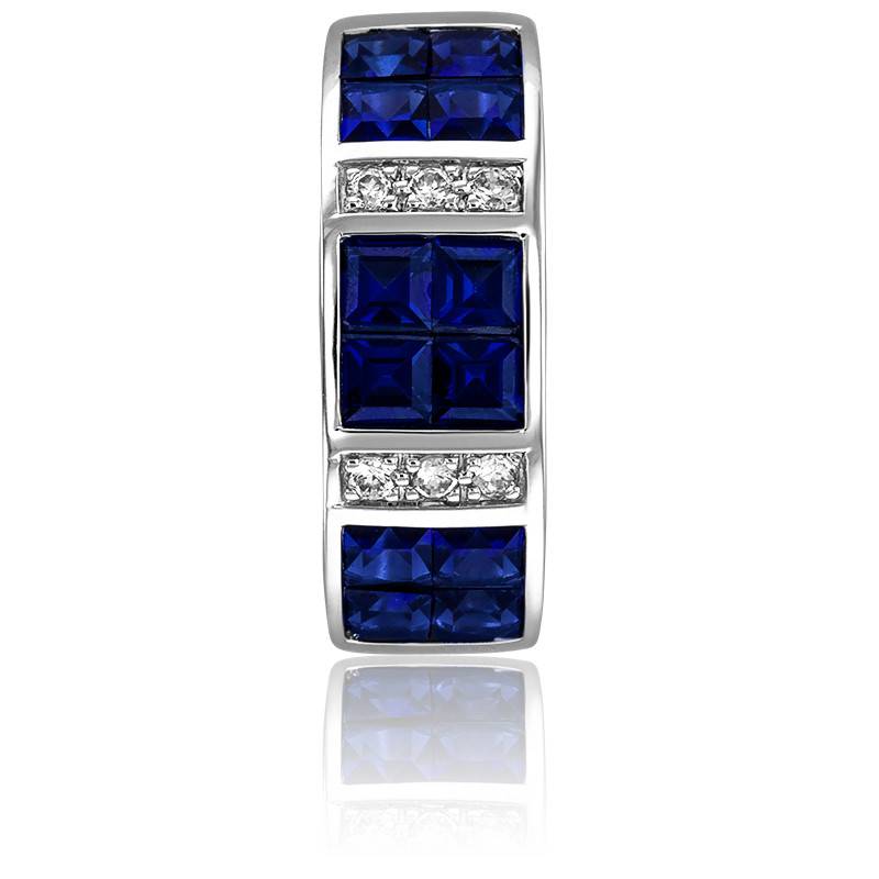 Craquez pour cette bague en or blanc rhodié 750/1000 (18K) composée de douze saphirs bleus de 2,46 carats de taille princesse et sertis à grains. Le terme saphir provient du grec sappheiros " pierre de couleur bleue ". Il peut aussi venir de l 'hébreu sappir qui sgnifie " la plus belle des choses "... L'éclat de sa pierre et sa limpidité en fait une pierre précieuses incontournable dans le domaine de la joaillerie.
