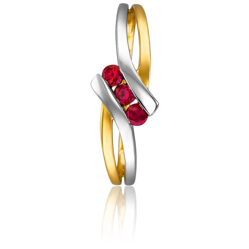 Nous sommes certains que vous allez succomber au charme et à la finesse de cette bague réalisée en 2 ors 750/1000 (18K). Fine et délicate, elle est composée de trois rubis centraux de 0,207 carat, taille brillant et sertis semi-clos. Ceux-ci sont enserrés au milieu de deux anneaux entrelacés en or jaune et en or blanc 750/1000 (18K). La bague, d'une largeur de 7 mm, viendra sublimer votre main et apporter luminosité à vos tenues.