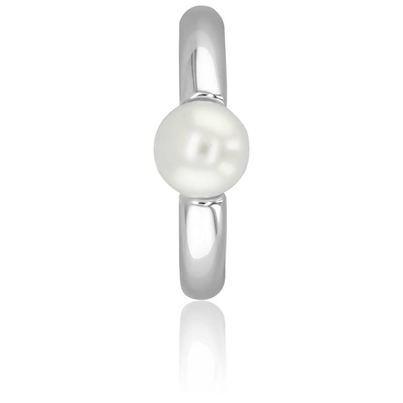 Nous avons le plaisir de vous présenter cette somptueuse création de la maison. Cette bague a été réalisée entièrement en or blanc 750/1000 (18K) et est sublimée par une perle d'eau douce blanche a un diamètre de 6,50 à 7 mm. Telle en apesanteur, cette perle est enchâssée dans l'écartement de la monture.