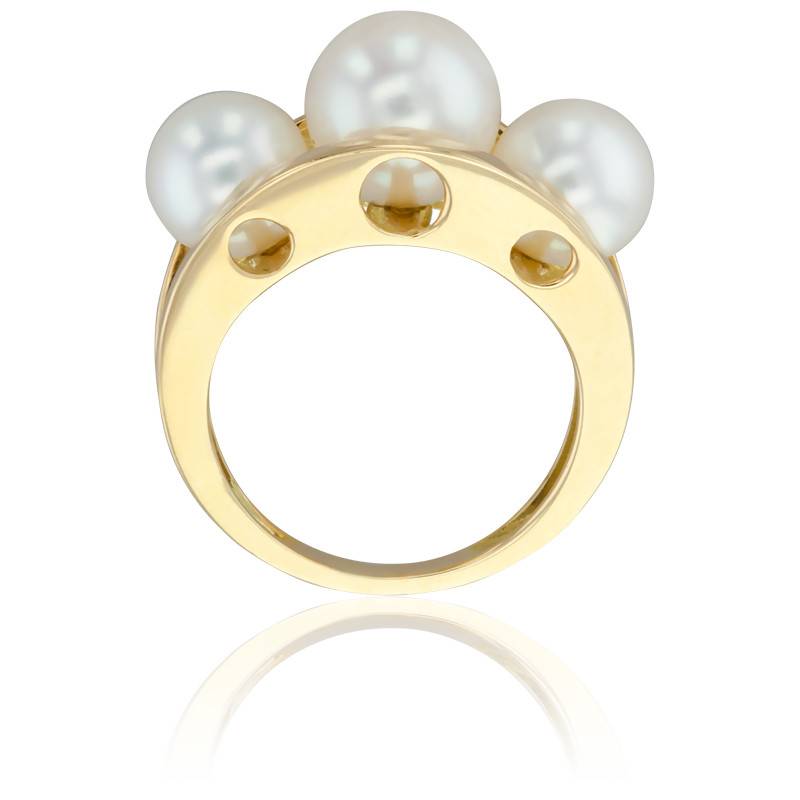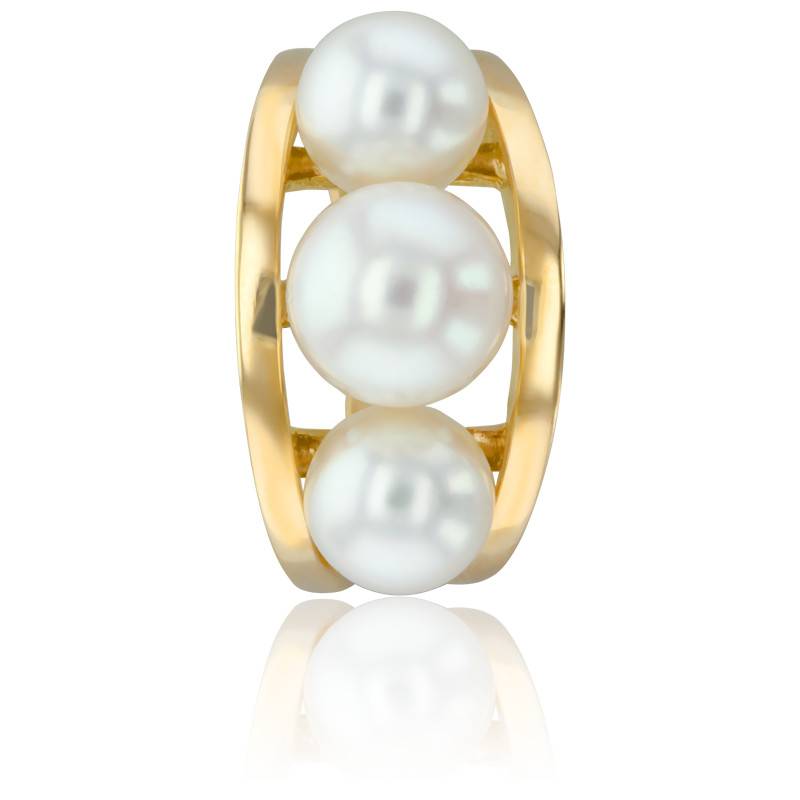 Romantique et délicate, cette sublime bague en or jaune 750/1000 (18K) apportera une touche d'élégance à vos tenues. Les perles d'eau douce ont un diamètre allant de 7,5 mm à 10 mm. Telle en apesanteur, ces perles sont enchâssées dans l'écartement de la monture.