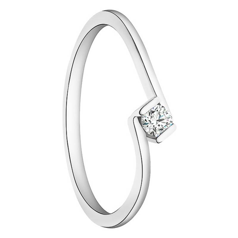 La maison vous propose cette douce création qui va vous plaire à coup sûr ou à votre moitié ! Cette bague est de type solitaire avec une forme des plus originales. Elle est réalisée en or blanc 375/1000 (9K) et dispose en son centre d'une forme carrée. Cette forme est sertie d'un diamant de forme brillant qui est serti semi-clos. Ce diamant a un poids de 0,08 carat et a une qualité GSI1. Enfin, le poids d'or moyen de la bague est de 1,48 gramme.