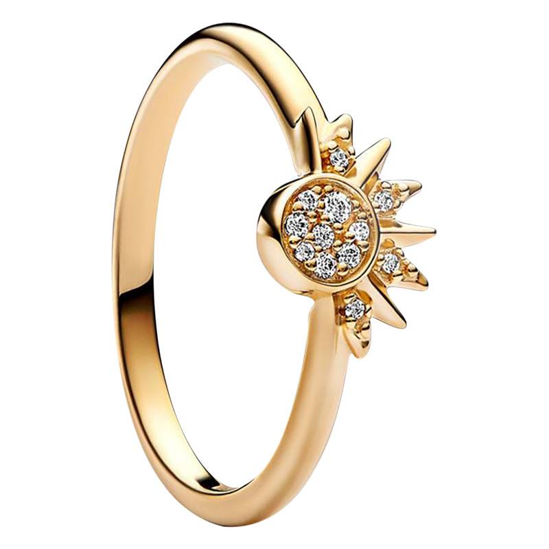La Bague Céleste Soleil Scintillant incarne parfaitement cette philosophie. Confectionnée en métal doré à l'or 585/1000 (14K), elle est ornée d'un motif de soleil formé par un cercle de détails pavé incolore avec des rayons irradiant sur l'un de ses côtés. Disponible en plusieurs tailles, cette bague s'adapte parfaitement à votre doigt, ajoutant une touche de romantisme et de sophistication à votre collection.