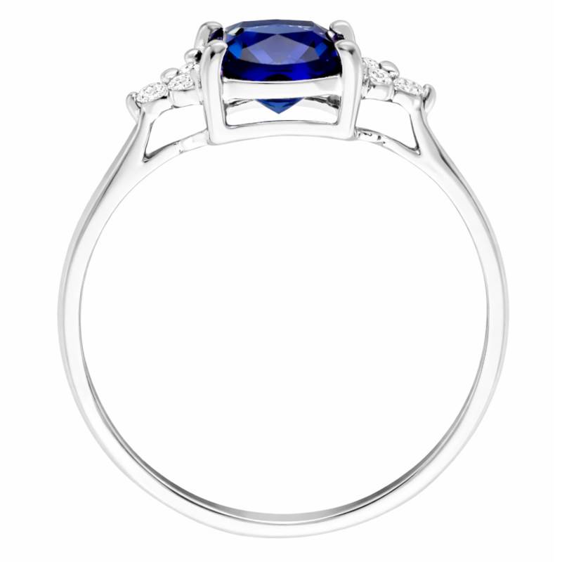 Laissez-vous envoûter par notre somptueuse Bague Coussin Saphir & Diamants de Synthèse 0,10 cts en Or Blanc 375. Une pièce délicatement façonnée en Or blanc d'une pureté de 375/1000 (9K), où la lumière se reflète sur une finition polie et brillante. Cette parure, immaculée de blanc, sublime le doigt avec une largeur de 1,60 mm et une épaisseur de 1,00 mm, pour un poids de 1,42 g. En son cœur, trône un saphir bleu de 7x7 mm, entouré de six diamants blancs qui dansent autour comme des étoiles vibrantes.