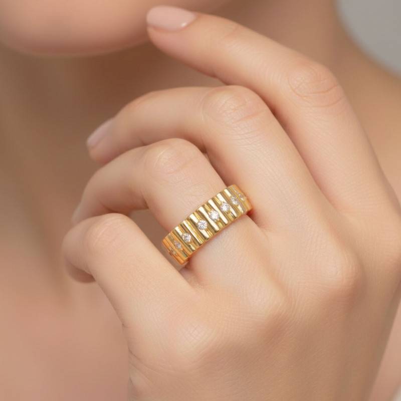 Découvrez la Bague Crantée en Or Jaune 375 & Oxydes de Zirconium qui se déploie comme un poème lumineux autour de votre doigt. Ce bijou, taillé dans de l'Or Jaune 375/1000, rayonne d'une lumière solaire, tandis que ses oxydes de zirconium, semblables à des gouttes de rosée, capturent chaque rayon pour le restituer en une danse étincelante. Avec une largeur délicate de 5,80 mm et une épaisseur fine de 1,50 mm, elle épouse la peau avec grâce et légèreté. Son poids total de 3,10 g en fait un compagnon discret mais présent. 16 pierres, d'un blanc pur, ornent cette bague de reflets ensorcelants.