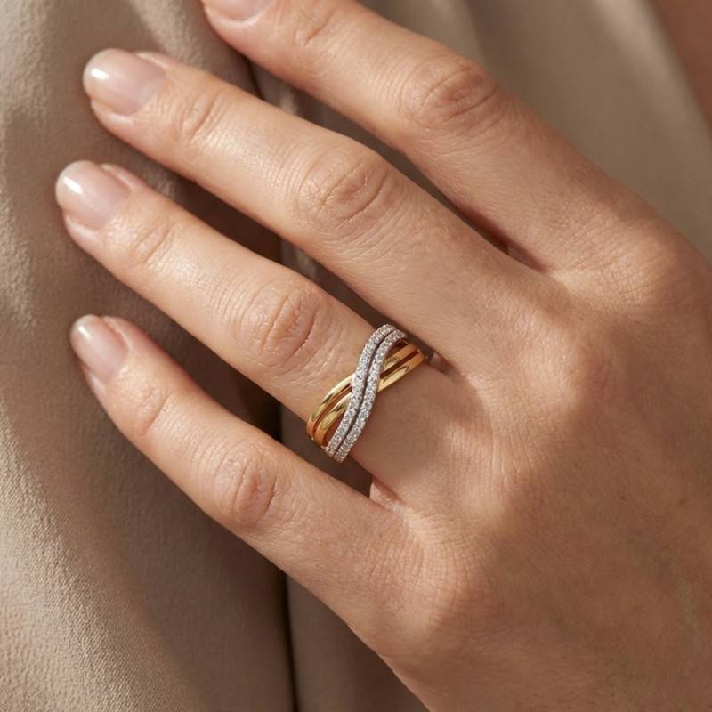 Faites la découverte de cette nouvelle Bague Double. De forme croisée, ses deux lignes entrelacées évoquent l'infini et se parent de deux finitions distinctes. Une partie en or jaune 375/1000 (9K) polie et l'autre agrémentée de deux pavés d'oxydes de zirconium blancs. Les deux structures présentent un sillon sur chacune de leur surface pour une symbolique encore forte. Notez que les deux pavés sertis à griffe disposent de 56 pierres rondes et la bague dispose d'une épaisseur de 3.5 mm.