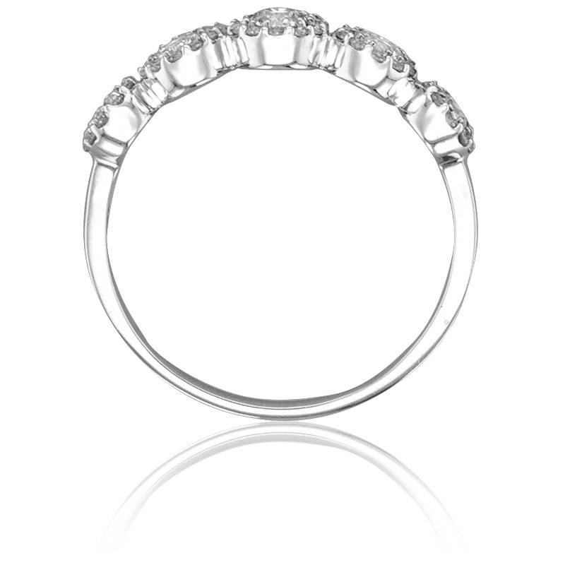 Celle-ci est une bague de fiançailles en or blanc 750/1000 (18 K) composée de cinq volutes mises côte à côte, entièrement pavées de diamants. Chaque volute est pavée d'un diamant central, lui-même entouré d'une multitude de diamants. La volute centrale est composée d'un diamant de 0,11 carat, tandis que les quatre autres volutes de part et d'autre sont composées de diamants centraux de plus en plus petits.