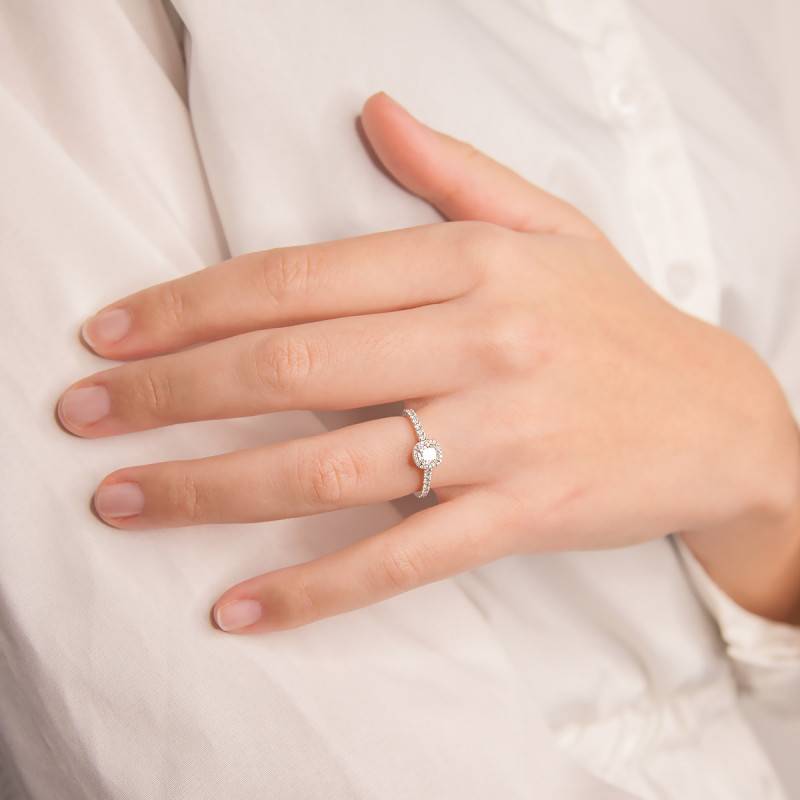 Comment réaliser une demande de fiançailles parfaite ? Montrez-lui combien vous l'aimez au travers d'une sublime bague de fiançailles diamant ! La marque Alliantine vous propose ce somptueux modèle en or blanc 750/1000 (18K) et ses diamants lumineux.