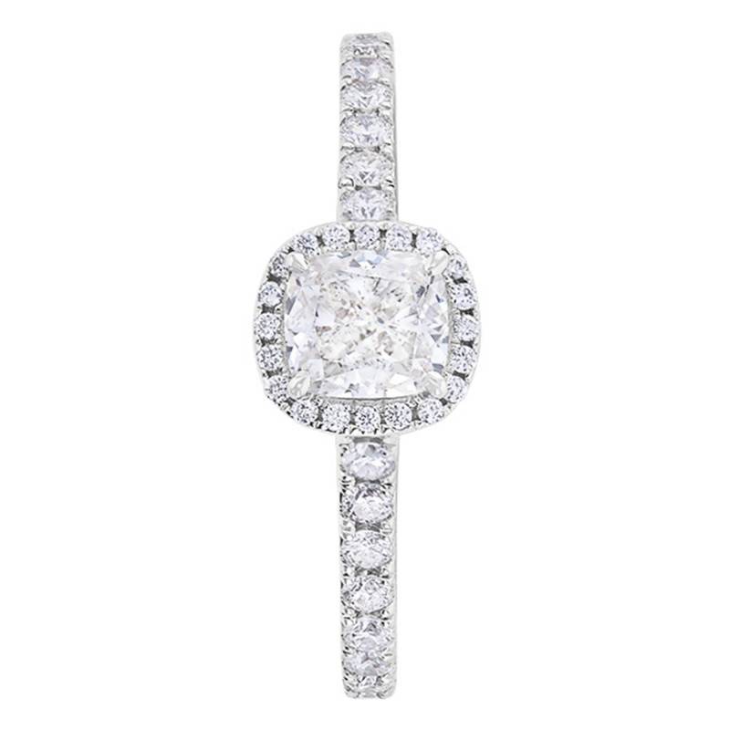 Son allure féminine et élégante fait de cette bague diamant un bijou d'exception. Le corps de la bague est paré de 36 diamants blancs pour un total de 0,30 carat. La tête de la bague est travaillée avec précision et surélève un somptueux diamant coussin de 0,50 carat. Les diamants sont d'une couleur GH, l'un des plus hauts niveaux de blancheur pour un diamant. Leur pureté SI2 vous assure de porter des diamants de qualité qui laisseront passer la lumière et révèleront l'éclat des diamants. Ce modèle en or possède un poids moyen de 2,50 grammes pour un tour de doigt 52. Celui-ci pourra légèrement varier en fonction de votre tour de doigt.