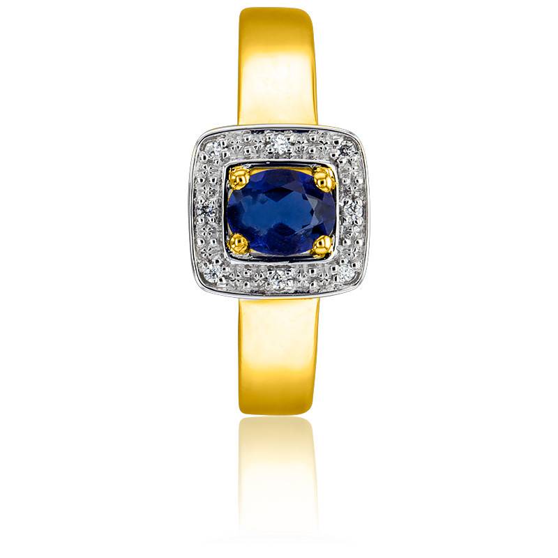 Proposée par la maison Joeilli, cette bague saphir Déjanire se compose d'une alliance entre or jaune 750/1000 (18K) et or blanc 750/1000 (18K). Composé d'un anneau, d'un coussin central de forme carrée pavé de diamants et d'un saphir, ce bijou est aussi élégant que témoin de la virtuosité de la maison joaillière.