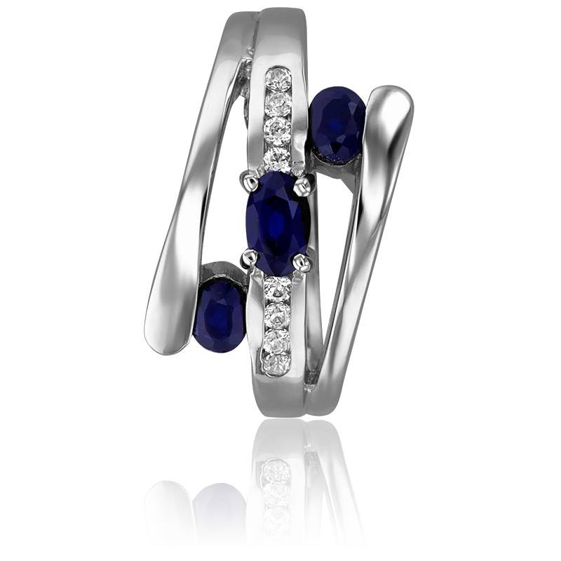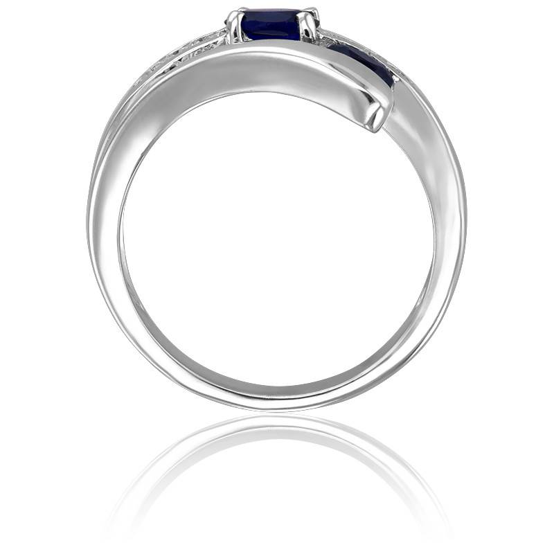 Ancelys vous présente sa ravissante bague en or blanc rhodié 750/1000 (18K). La beauté de cette bague réside dans son design unique. Ce bijou se compose de trois branches dont la principale est pavée de huit diamants sertis rails et agrémentée d'un saphir 5x3mm serti quatre griffes et taillé en ovale.
