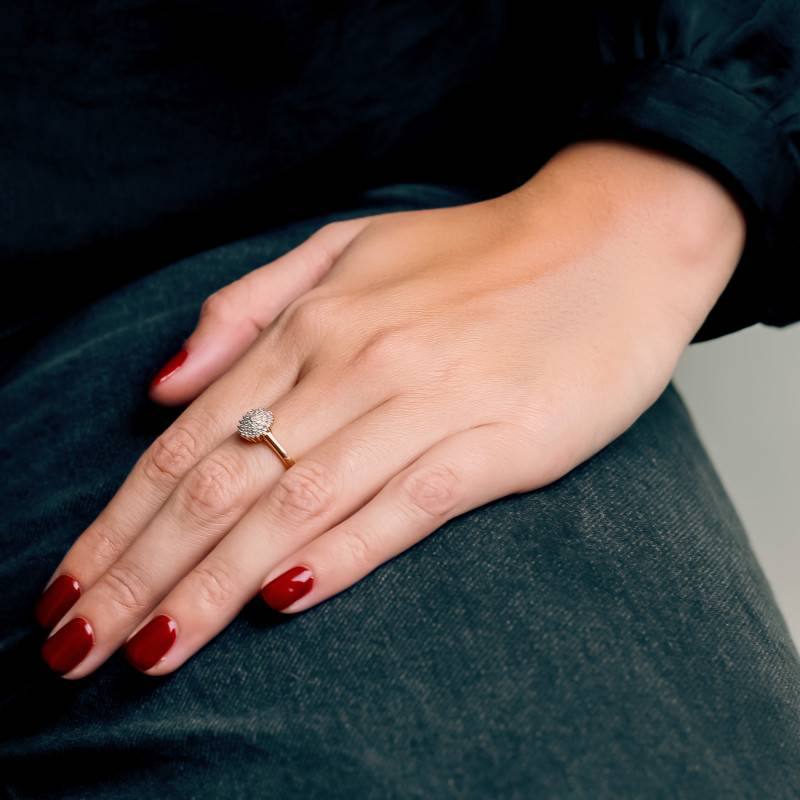 Cette Bague en Argent 925 plaqué Or jaune captive par son éclat éclatant, illustrant une symphonie de lumière et de sophistication. Rehaussée de 37 diamants de synthèse cultivés en laboratoire d'un total de 0,24 ct, elle évoque des spirales infinies de féminité pure. L'argent au plaquage en or, d'une finition polie et brillante, glisse délicatement le long de la peau.